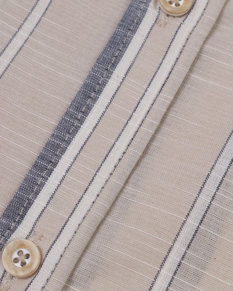 القميص تصميمه بسيط وكلاسيكي، بلمسة كبيرة بتخليه يتبع كل حاجة، من الجينز أخيرًا البنطلونات القماش. القَصَّة مظبوطة بشكل كامل على الجسم أنيق، كمان الخياطة متقنة علشان شاملك شكل شيك واحترافي.
